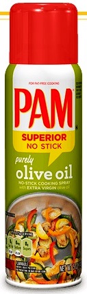 So how does Pam or a competitive brand get away with promoting their product as Fat Free and Zero calories per serving? Scan back up to the serving size which is a 1/4 second spray. By definition, if a food has a 1/2 gram of fat or less per serving, it can claim zero fat per serving on the label. It’s all about serving size and I don’t know about you, but I use more than a 1/4 second spray when using this type of product.