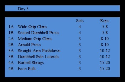 This program is flexible leaving days 2 and 4 for a combination of calves & core & conditioning / recovery work with day 7 being completely off from the gym. The foundation is the big four workouts and they are quite challenging if you push yourself.