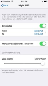 1 – Setting the “night shift” on my iPhone for 2.5 hours before going to bed.
