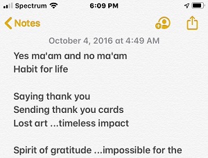 My parents taught me as a little boy that whenever I received a gift of any kind or was the recipient of some kind gesture, a thank you note was an automatic. It doesn’t have to be fancy. In fact, if you really think about it, it only takes a moment to craft a few well thought out and meaningful lines expressing your feelings of gratitude, and yet its impacts can be both powerful and priceless.