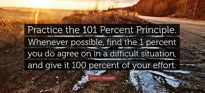 Also, when dealing with difficult people, for example, a coworker with whom you have to spend time together regularly, you might consider the 101% Principle from leadership expert John C. Maxwell. If you can only find one thing where you agree with an individual, give it your 100% attention and focus and let the rest go. This is a far better strategy than daily harboring bitterness towards them. As I said above, what you give out is what you will receive in return.