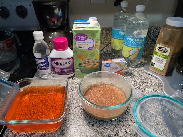 On the day before my procedure, I was able to have my morning coffee and a small bowl of oatmeal at 7 a.m. After that, it would be Jell‑O and chicken broth for the rest of the day. At 10 a.m., I took four Dulcolax tablets, and at noon, I drank 32 oz of Walmart’s Clear sparkling water with a half bottle of Miralax. I purchased flavorless Miralax, hoping that the taste would be tolerable.