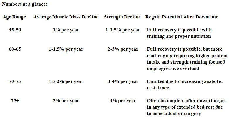 To further emphasize the impact of the aging process on muscle mass and strength, I would like to provide some statistics that may serve as a wake-up call if you’ve been neglecting exercise, especially strength training.