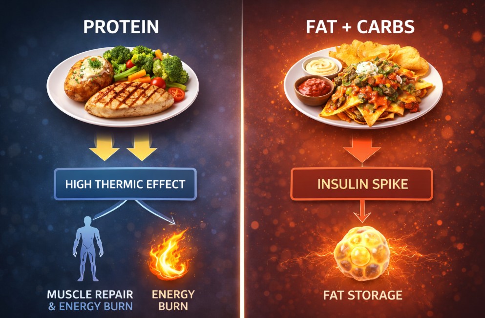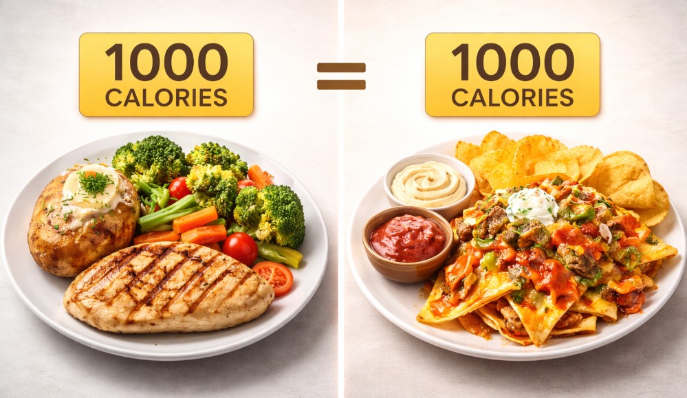 A meal of grilled chicken, vegetables, and potatoes sends very different signals than a meal of chips, nachos, or sugary snacks—even if the calorie totals are identical.