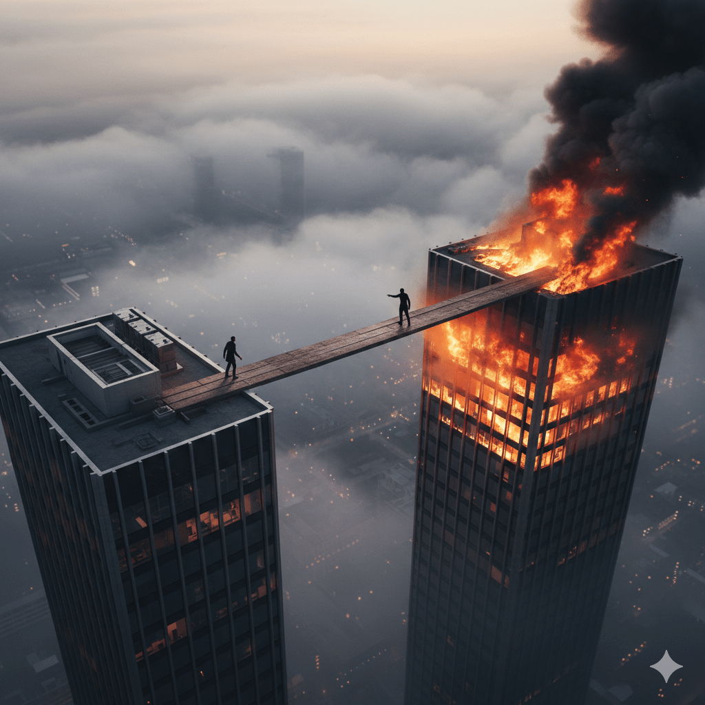 But what if your most treasured family member was on the other roof and the building was on fire? Would you cross it then? Of course—without hesitation. The change in circumstances changed everything.