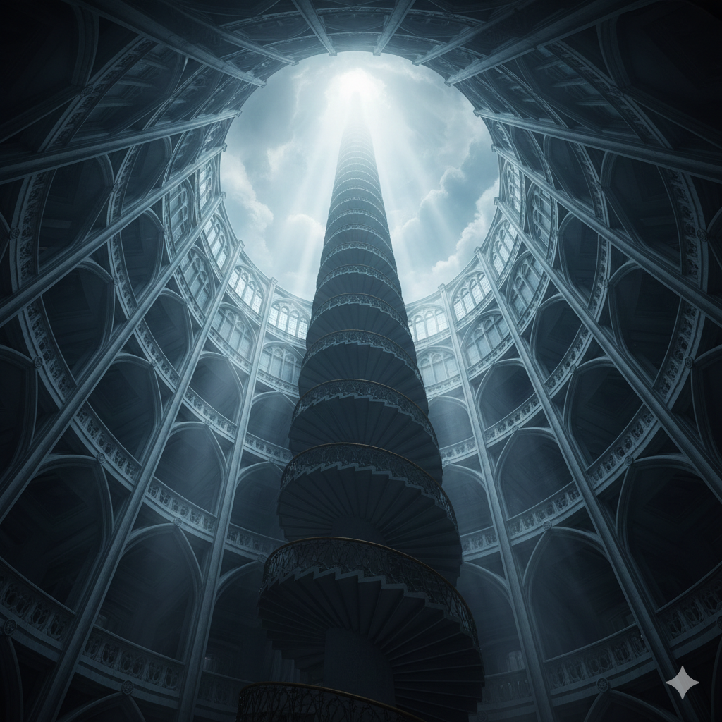 The Spiral Staircase Imagine standing at the bottom of a 100-story building with a spiral staircase leading to the roof. Looking at the top is overwhelming. Now, take your eyes off the top and focus only on the step right in front of you. Take that step. Not too bad, right? Now take the next. It’s no more difficult than the one before. You can walk to the moon if you break your goals into bite-sized chunks and focus on one piece at a time. The key is to simply not look up.