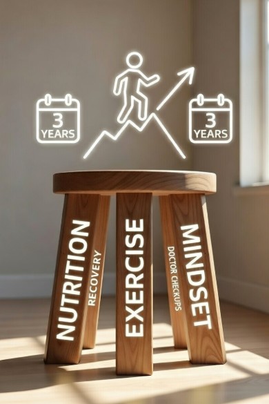 If you follow my blog, you know I often talk about the “Five-Legged Stool” of health: Exercise, Nutrition, Sleep & Stress Management & Recovery, Regular Doctor Checkups, and Emotional health, which includes Mindset.