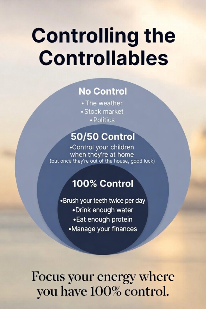 So what’s the parallel to today? I learned the idea of controlling the controllables from Precision Nutrition, where I have multiple certifications, and it’s a concept I regularly share with my clients.