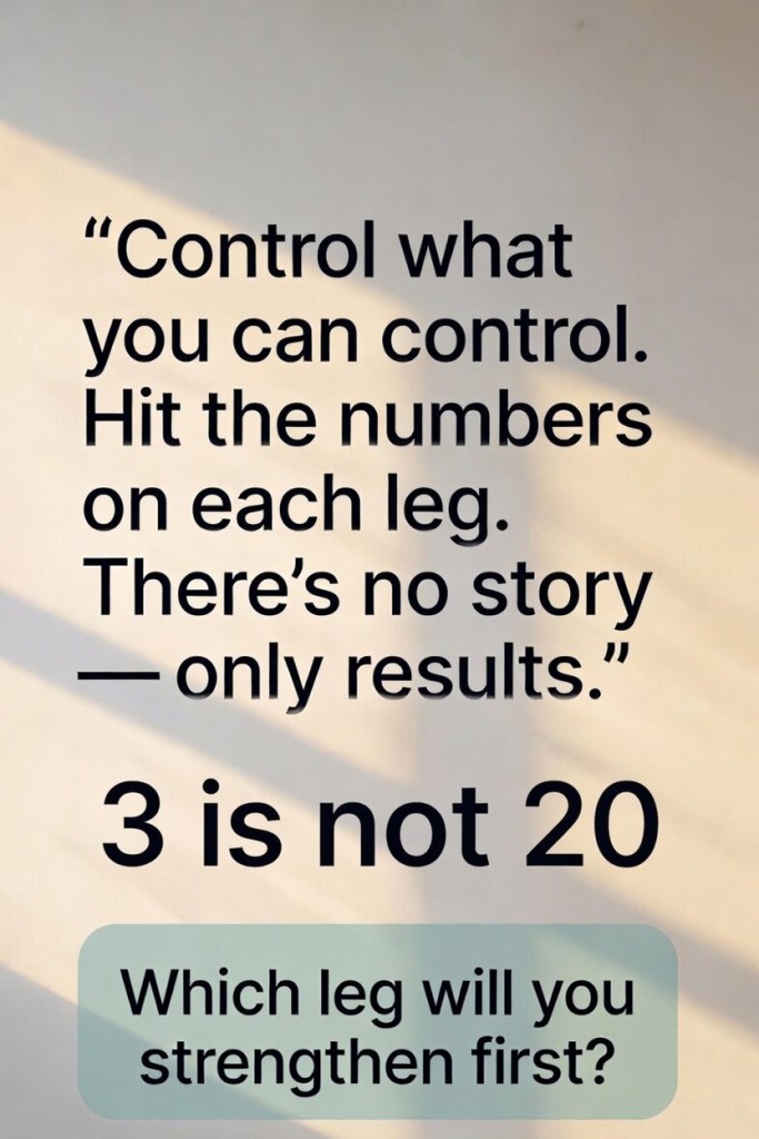 Just like Kenny taught all those years ago, and just like Jim Rohn made crystal clear with his sales story, there’s simply no room for stories—only the numbers, the actions, and the results. Control what you can control, hit your targets for each of your five legs, and watch your health (and your life) take off.