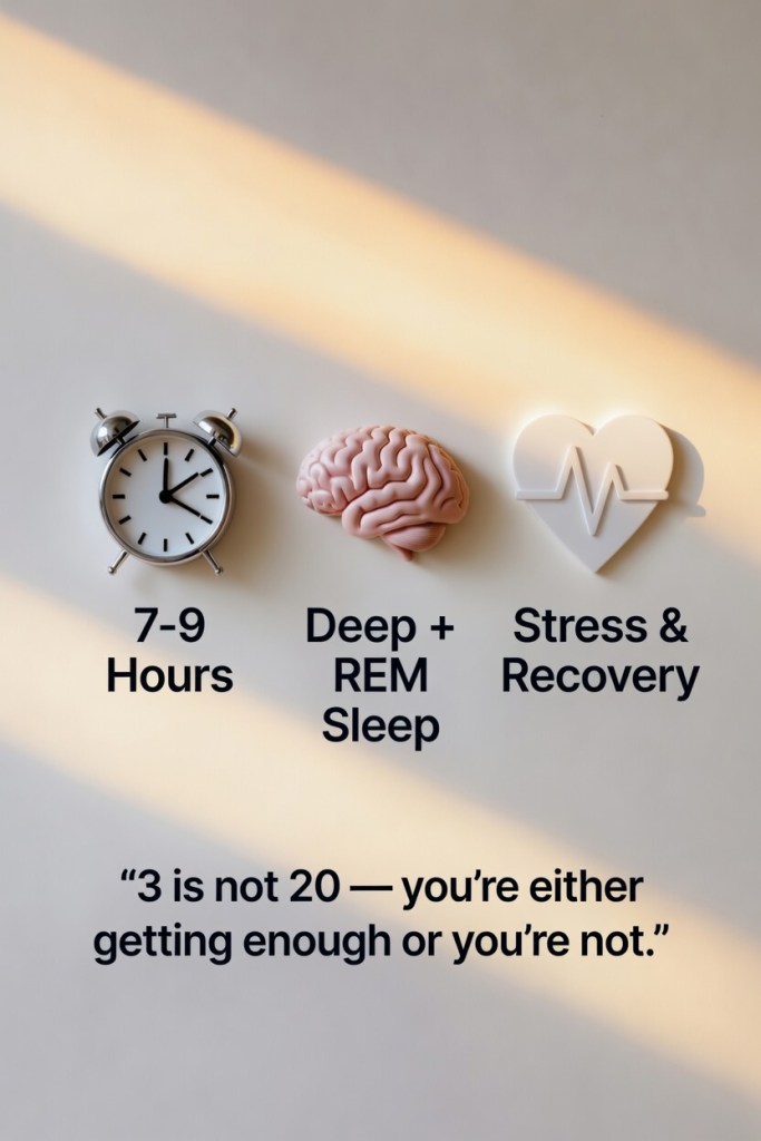 Getting enough quality sleep is also tied directly to metabolic health. Short sleep drives insulin resistance, elevates cortisol, promotes fat storage, and increases cravings. Even if you’re eating well and exercising, chronic sleep deprivation can stall fat loss.